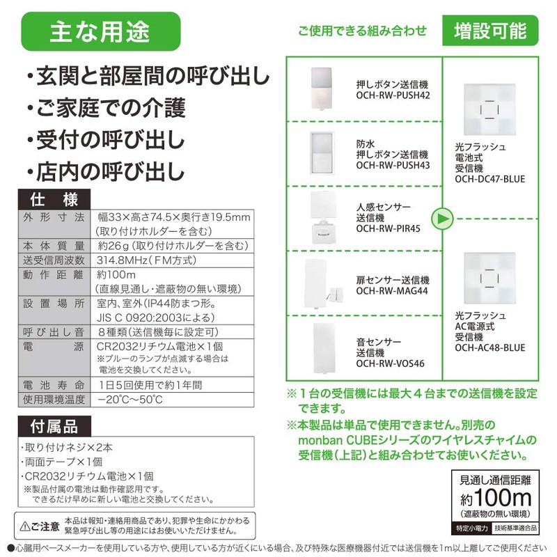 Ohm Electric Monban CUBE Push Button Transmitter OCH-RW-PUSH42 08-0542 OHM White