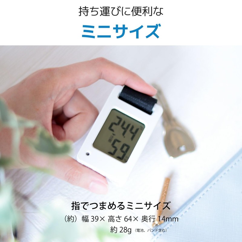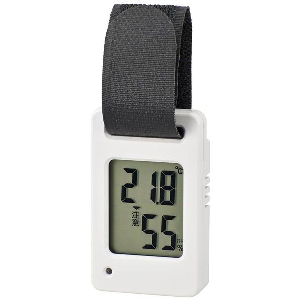 Ohm Electric TEM-801-W 08-1452 OHM Thermometer/Hygrometer, Mini, Portable, Digital Band, Heatstroke Prevention, Flashing Red Light, High Temperature Warning, Caution Mark Display, White