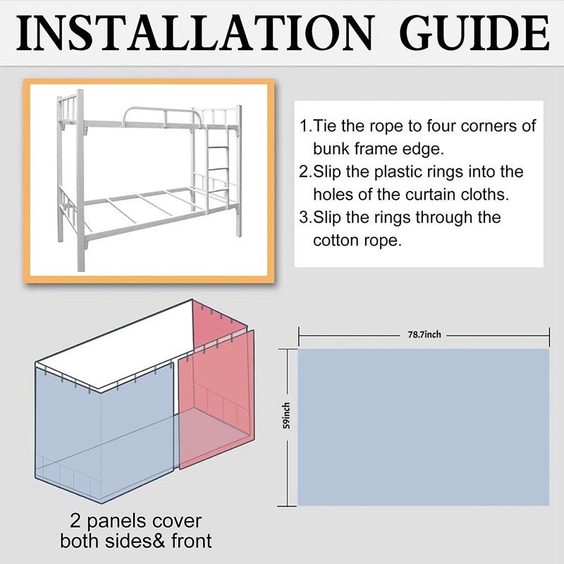 - 4 Quickly and easy to set up with hooks and ropes. It is more convenient for bunk bed as displayed on pictures