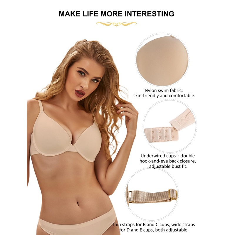 - Widen Straps: Our T shirt bra comes with adjustable straps. For D and E cup sizes, we have specially widened the straps for added comfort and support