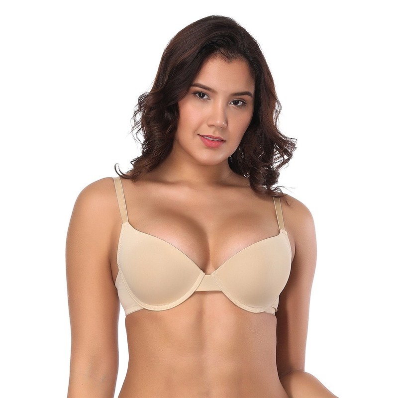 ohmydear Women's Bras Underwire Comfort Push Up Plus Size Ladies Bralette Smooth Tshirt Sexy Deep V Plunge Soft Minimiser Bras Large Breasts, 38C Beige