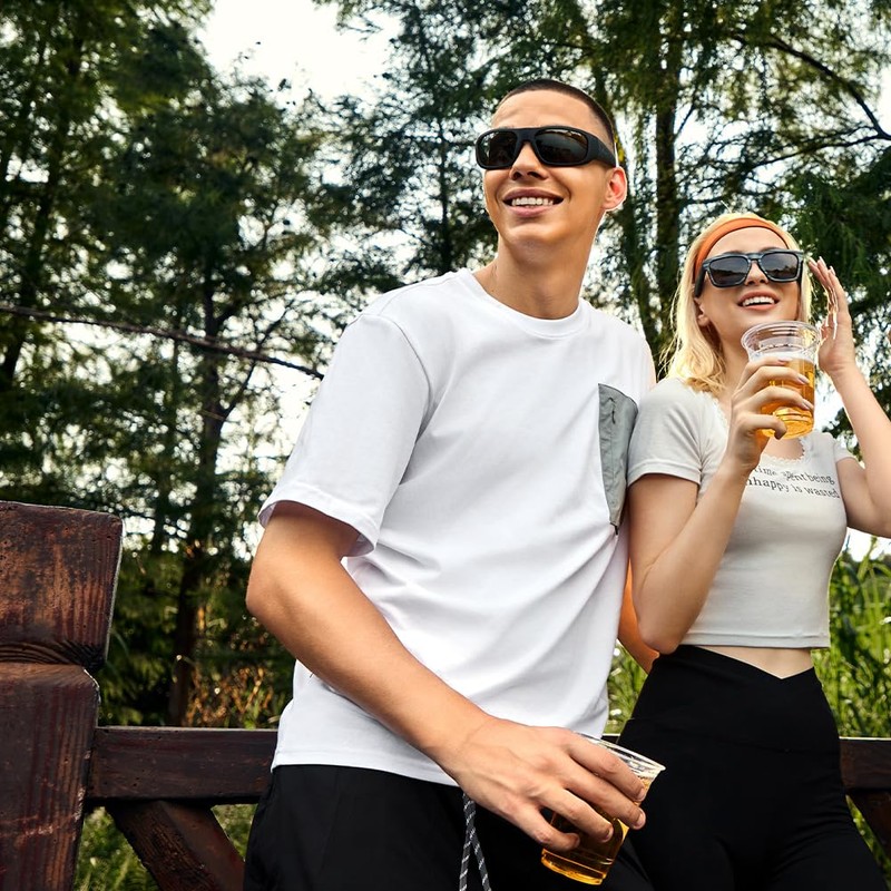 • Open ear Bluetooth speaker: Bluetooth sunglasses with open ear speaker system allows you to list your favourite music and everything around you. HD Microphone Offers High Quality Sound While on Calls