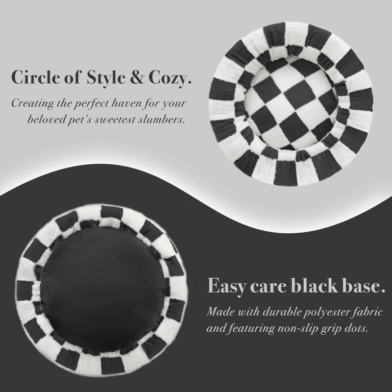- Cheerful Checkered Charm: Our adorable round dog bed boasts a playful checkered pattern that's sure to make tails wag! It's not just a bed, it's a cozy little fashion statement that'll brighten up any corner of your home.