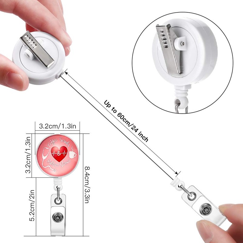 - 💕Retractable length: built into a durable retractable nylon cord, up to 60 cm. The diameter of the badge reel is 1.25 inches.