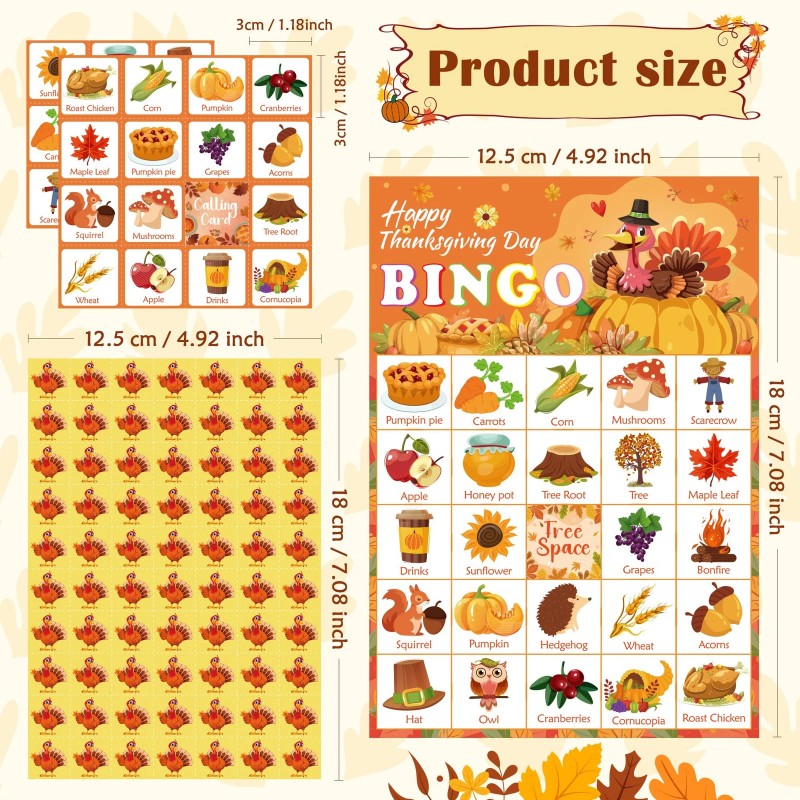 - [Thanksgiving Creativity Unleashed]: Beyond Bingo, our versatile Thanksgiving cards can be used for a myriad of Thanksgiving crafts and decorations. Let your imagination soar as you incorporate these festive cards into your DIY projects, creating a warm and inviting atmosphere that embodies the true spirit of Thanksgiving.