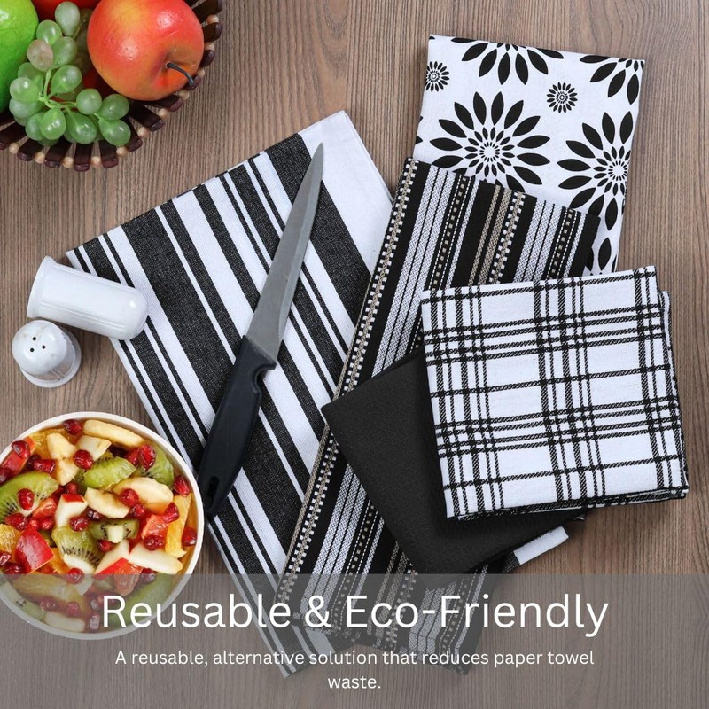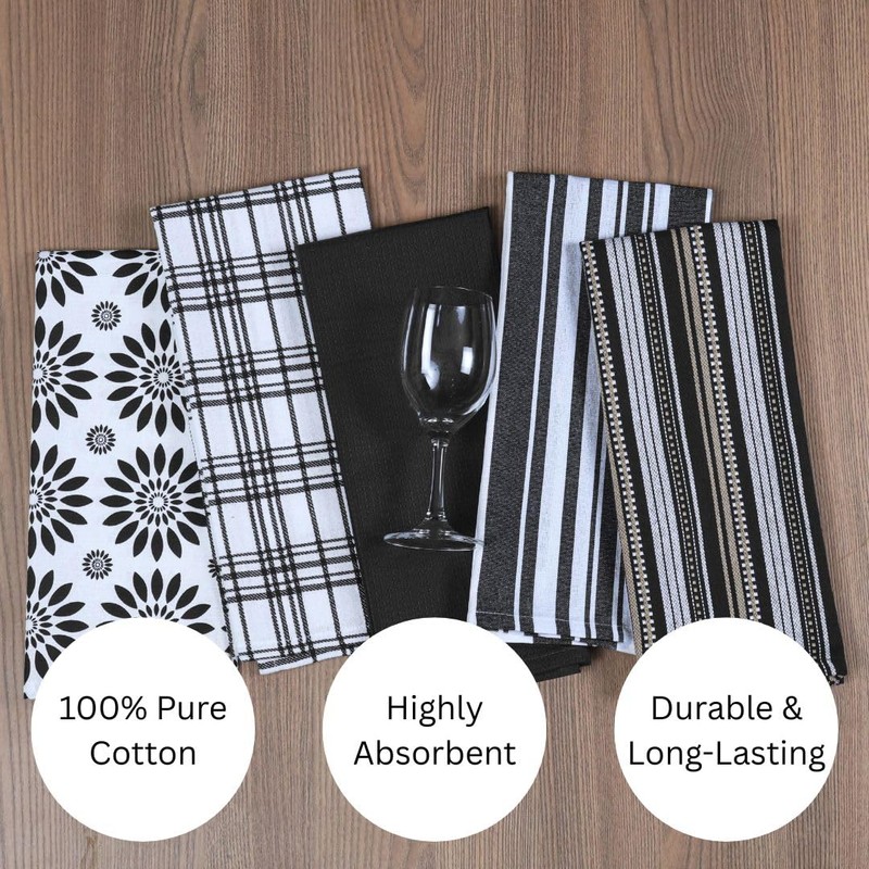 - SET OF 5 WITH ASSORTED DESIGNS: This pack includes 5 different towels with assorted patterns, adding a touch of charm and variety to your kitchen while ensuring you always have a fresh towel on hand.