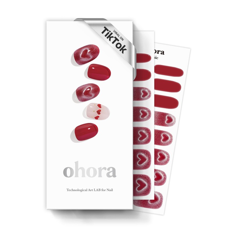 ohora Semi Cured Gel Nail Strips (N Heart Pop) - Works with Any Nail Lamps, Salon-Quality, Long Lasting, Easy to Apply & Remove - Includes 2 Prep Pads, Nail File & Wooden Stick