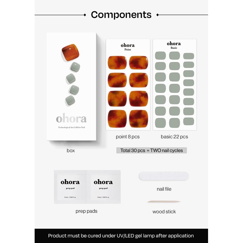 ohora Semi-Cured Gel Pedicure Strips 34pcs(P Vesuvio) - Includes 16 Solid Color, 14 Accent Wraps, 2 Prep Pads, Nail File & Wooden Stick