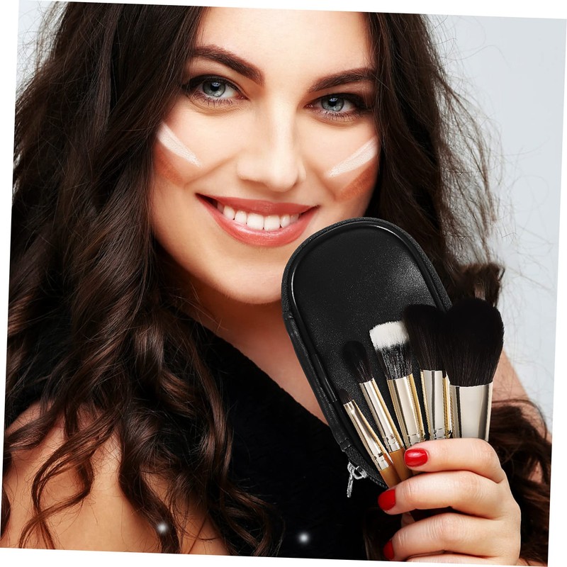 OHPHCALL 9pcs Travel Makeup Brush Holder Foundation Eye Blush Brushes Portable Case Travel Bag for Daily Use