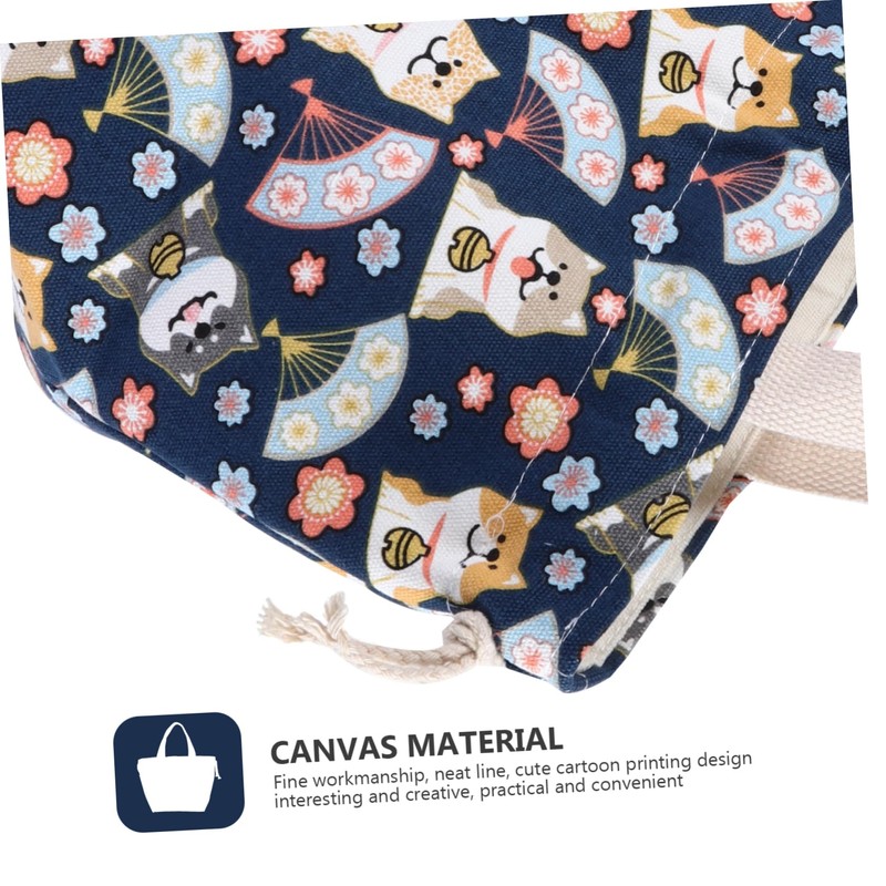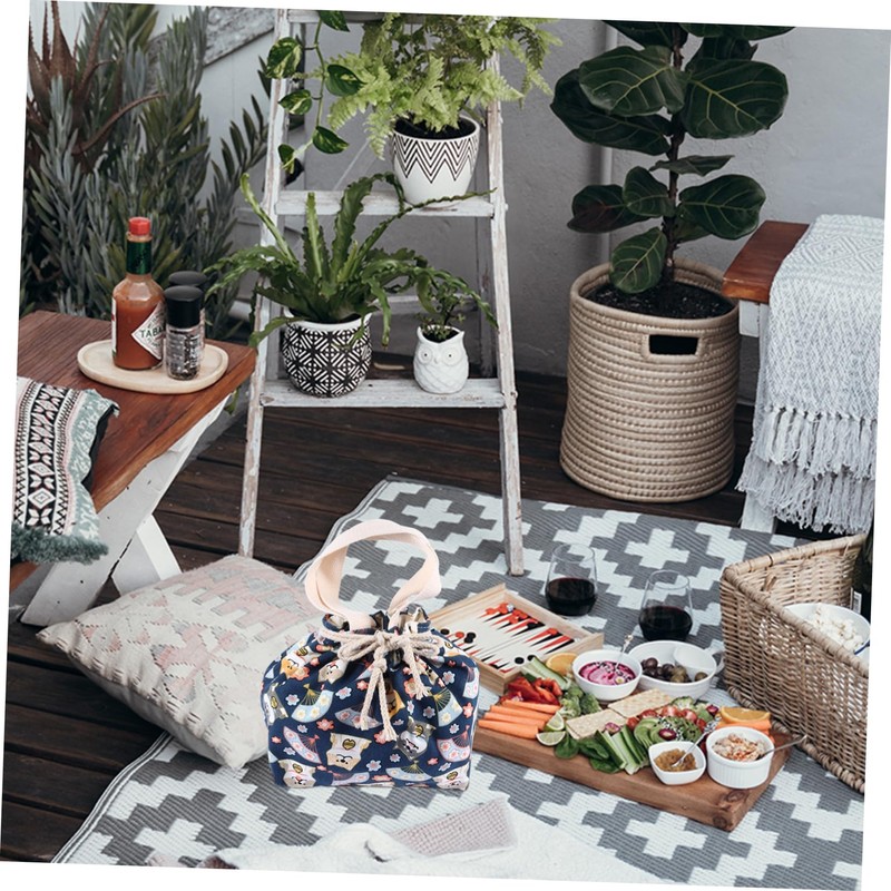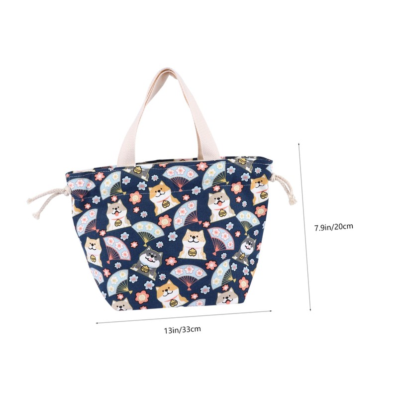 OHPHCALL Creative Japanese Style Lunch Tote Bag Canvas Drawstring Design Practical Bento Lunch Storage Pouch for Work School and Picnics for Food Storage and Meal Prep