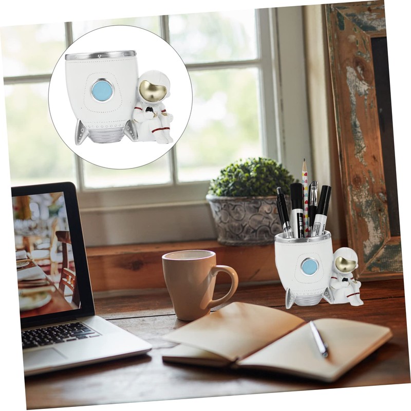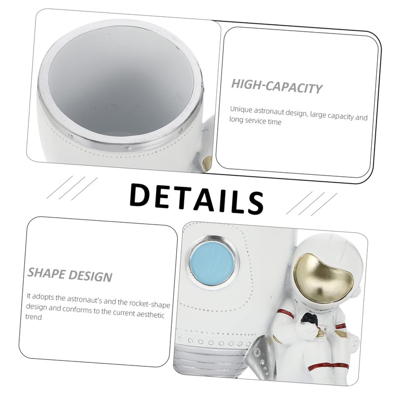 Astronaut Statues It can work as a desktop storage holder for workers in offices or for students in their home.spaceman pen holder Suitable storage box for students, classmates, workers, colleagues, etc.Astronaut Rocket-Design Pen Holder This pen holder is manufactured with for durable and use.pencil holder for kids Great for storing , pens, daily necessities at home