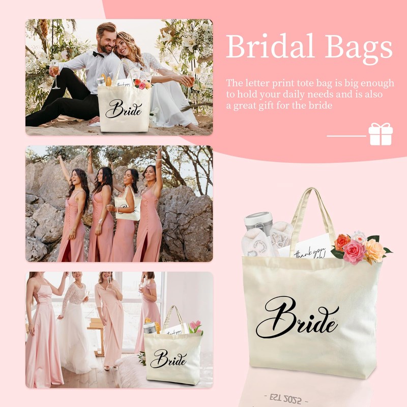 - {Premium Bride Bags} Canvas-polyester cotton material, sturdy and durable, foldable, reusable, and hand washable. The bridal gifts bag features polyester lining and a smooth zipper closure for added convenience and safety.
