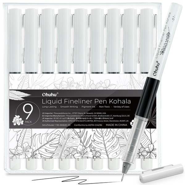 Ohuhu Millimeter Pens, Direct Fluid Drafting Pens, Set of 9, Black