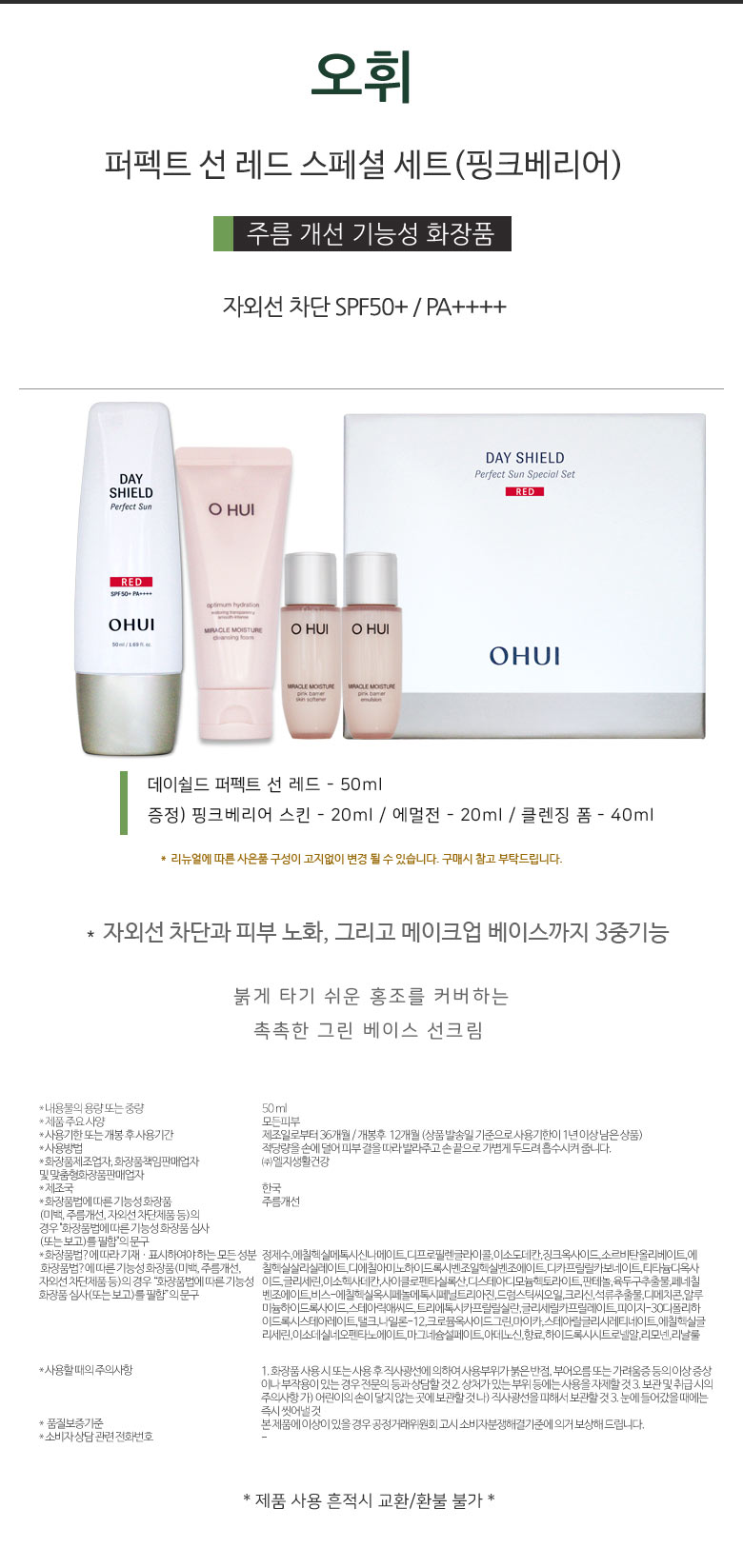 오휘 데이쉴드 퍼펙트 선 블랙 기획레드 선크림 기획세트">