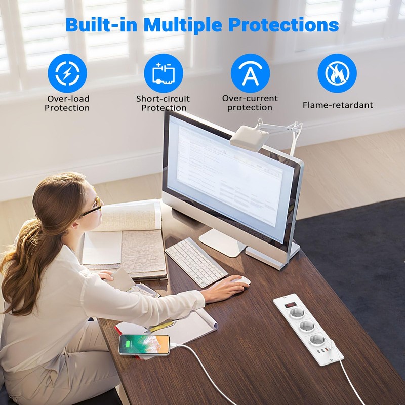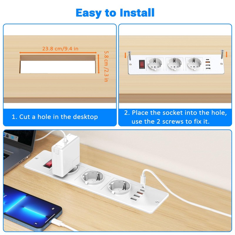 - Praktisch und Platzsparend : Die einbau mehrfachsteckdose mit USB C verfgt ber ein elegantes Design, das sich nahtlos in Ihren Schreibtisch oder Arbeitsplatz einfgt und einfachen Zugang zu Strom bietet, ohne Ihren Platz zu berladen.