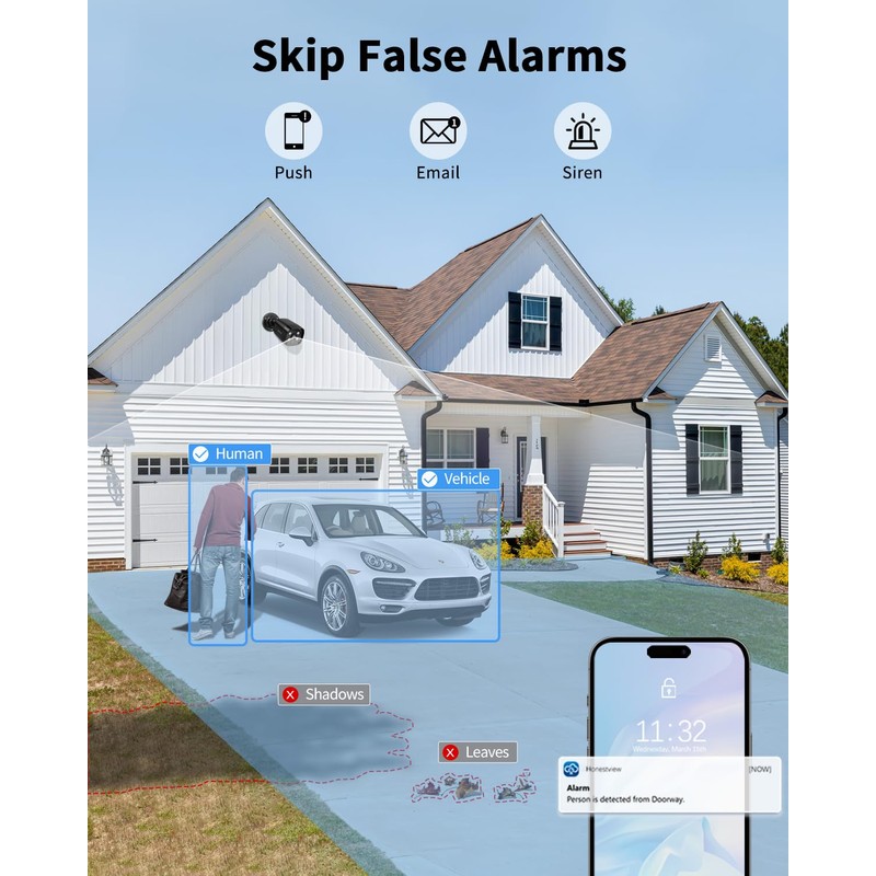 • 《Smart AI Person & Vehicle Detection》These wired security cameras use smart AI to detect people and vehicles while ignoring irrelevant motion like leaves or animals. Integrated into a reliable POE security camera system, they help reduce false alerts and send accurate notifications—so you only get alerts that matter, whether it's someone at your door or a car in the driveway.