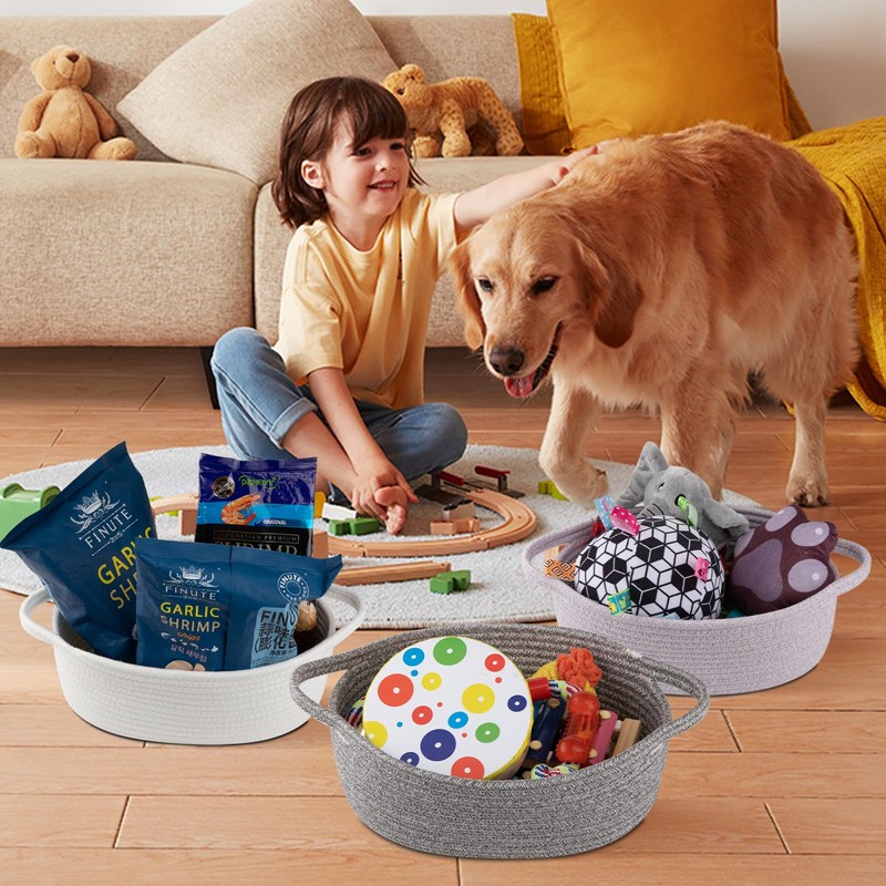 - Best storage options: The rope basket is the perfect organizer for keys, wallet, diapers, remote control, toys, cosmetics and other items, it can be used as a baby basket, bookshelf storage basket, desk basket, bathroom basket, children's toy basket, book basket, pet toy basket for cats and dogs and so on