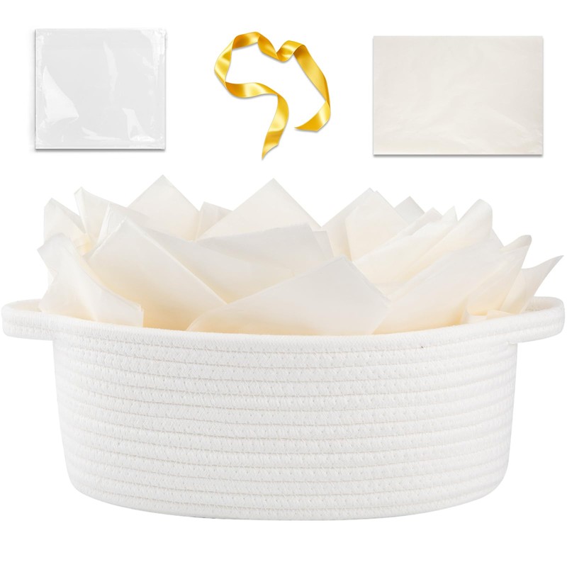 OIAHOMY OIAHOMY Gift Basket with Handle, Small Woven Basket with Gift Bag,Ribbon and Wrap Tissue Paper,Nursery Bins Empty to Fill with Small Items, Baby,Pet Toy Organizer - White