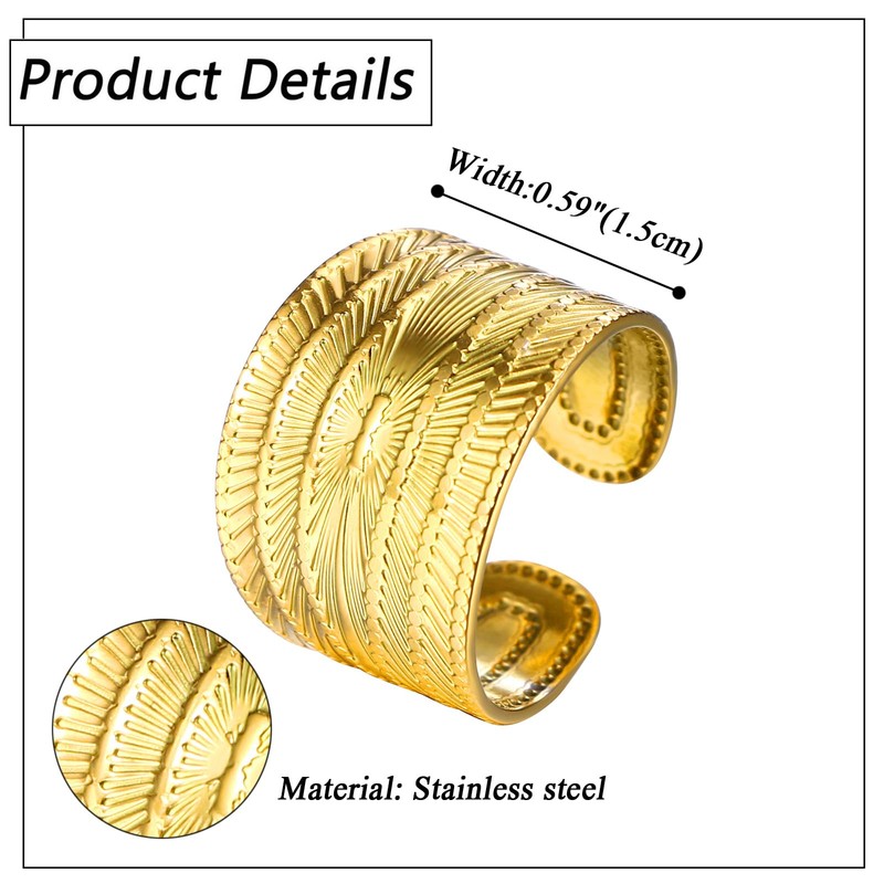 - 【Adjustable Open Ring Design】This chunky gold ring for women features an open design with an adjustable size, crafted from stainless steel with a gold plating finish. It's perfect for various finger sizes and can be easily worn or adjusted for a comfortable fit. Suitable for most womens and ladies.