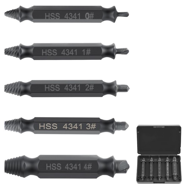 OIHCAZ Screw Extractor Set 5Pcs, HSS Alloy Steel Double-Headed Damaged Screw Extractor Set with Storage Box Screw Remover for Broken or Stripped Screws