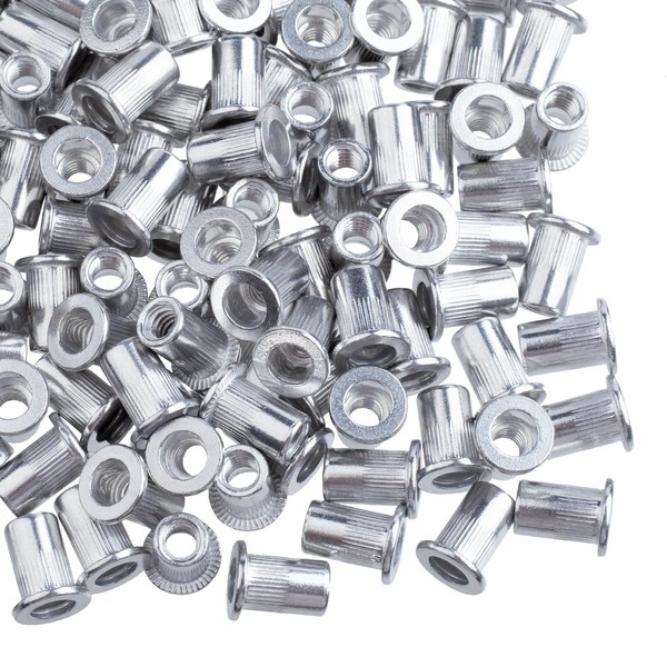 OIIKI 120 Pcs 1/4-20 Aluminum Flange Rivet Nuts, UNC Flat Head Threaded Insert Nut