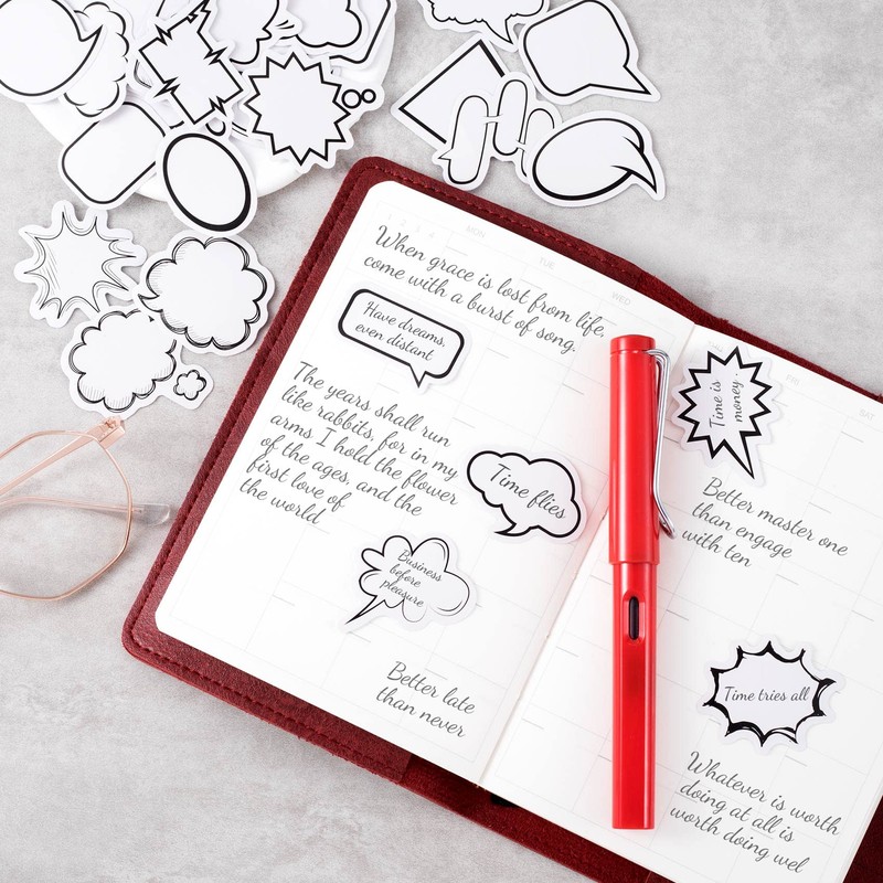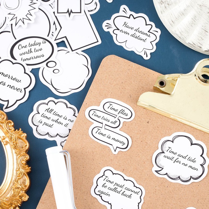 The dialog paper stickers are suitable for scrapbooking, planners, dairy, notebook, journals, frames, laptops, bottles, tables, walls, windows, etc
