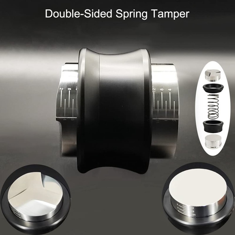 Oiiwowi Tamper 51Mm, Dual 2 in 1 Leveler Distributor Adjustable Flat Spring Tampers with Scale Coffee Tool