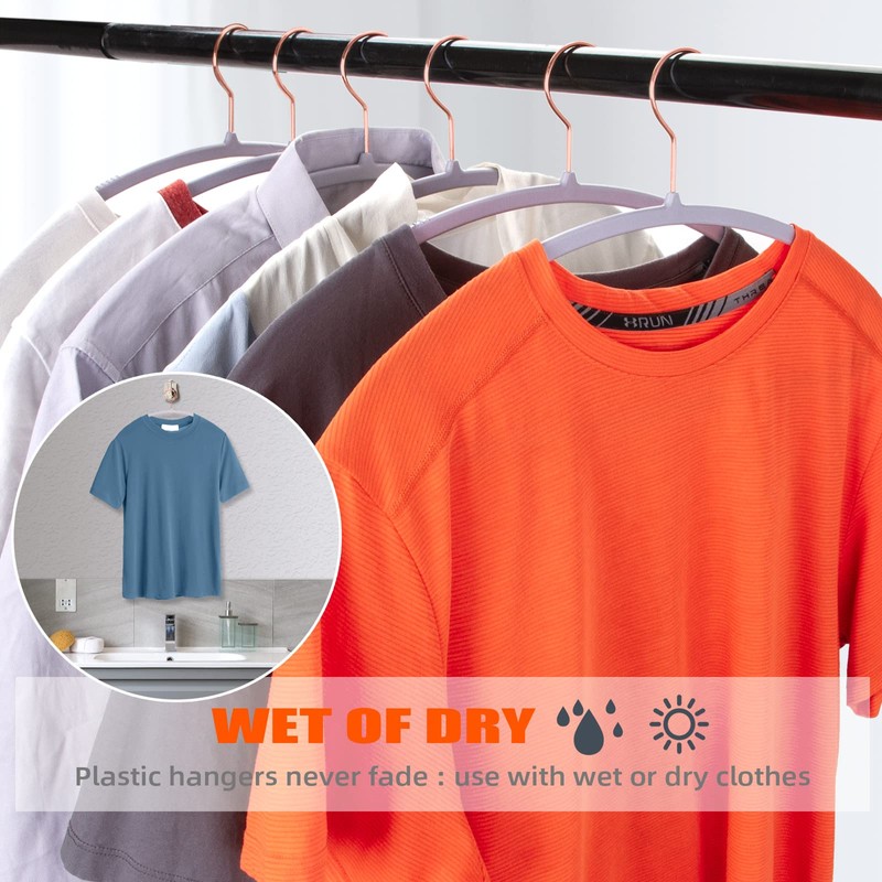 - {No Shoulder Bumps Design}Natural contoured shoulder shaped design coat hangers no shoulder marks which keeps your clothes look natural.Slim Rounded Hangers which makes your sweater bump free.【MORE PRACTICAL THAN VELVET HANGERS】 - It is a pain to use flocked hangars on regular clothing item as it sticks and takes extra long to hang everything up. plastic hangers also can hanging both wet and dry clothes for daily use.