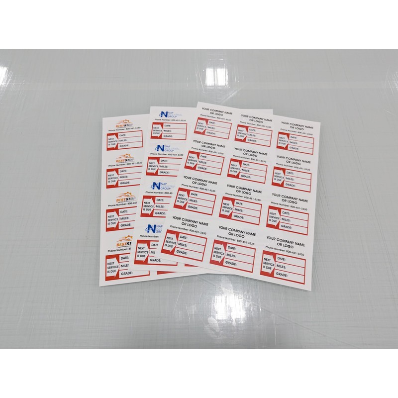 Introducing our highly customizable Oil Change Reminder Stickers designed exclusively for your business. Elevate your brand presence with these personalized stickers featuring your company information and phone number. Crafted on high-quality removable adhesive vinyl, these stickers effortlessly adhere to any window, ensuring a prominent display that catches the eye. The convenience of these stickers lies in their easy removal, leaving behind no sticky residue. The imprint is elegantly presented in black, adding a professional touch to your reminders. For added versatility, these stickers allow you to jot down additional notes with a pen or marker, providing a dynamic way to communicate specific details or personalized messages to your customers. Experience a seamless and swift turnaround with our efficient production process. We understand the importance of time in your business operations, and our commitment is to deliver your customized Oil Change Reminder Stickers promptly. The large size of these stickers, measuring 2-1/2" x 2-1/2", provides ample space to showcase your complete company contact information and phone number, ensuring that your customers have all the details they need at their fingertips. Each pack includes 250 stickers, conveniently organized with 12 stickers per sheet. This quantity allows you to efficiently manage your inventory, ensuring that you have an ample supply of reminders ready for distribution. The ease of use and professional appearance of these stickers make them an invaluable tool for enhancing your customer communication strategy. These stickers are not just a practical tool for reminding customers about oil changes or services; they are a reflection of your commitment to quality and attention to detail. The ability to customize each sticker with your company's unique information ensures that every interaction becomes an opportunity to reinforce your brand identity.