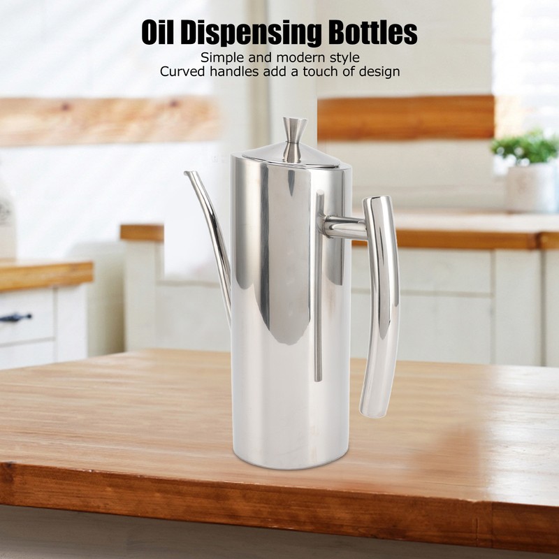 Oil Dispenser Bottle Stainless Steel Mirror Appearance Curved Handles Ergonomic Grip Drip Free Oil Bottle for Kitchen