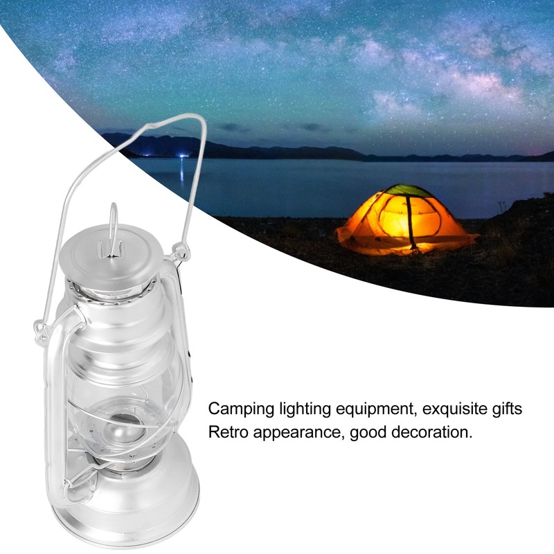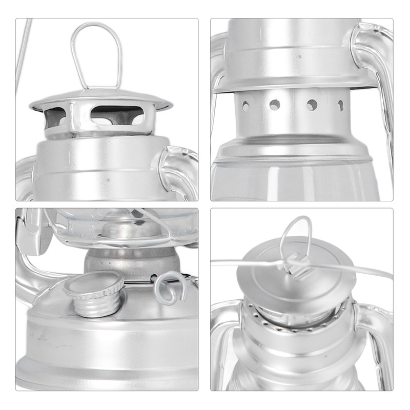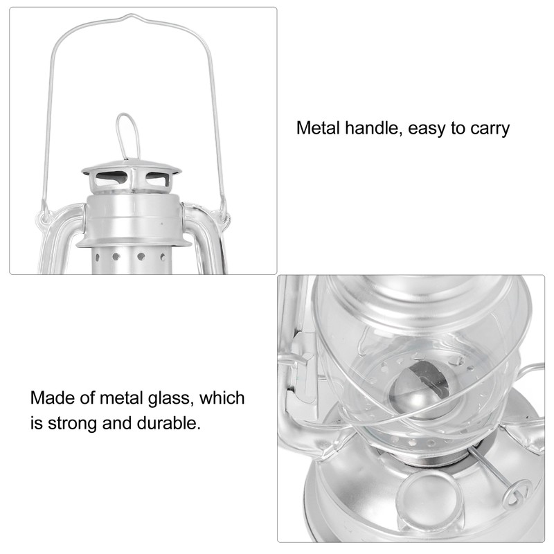 Oil Lamp Retro Appearance Iron Art Silver Kerosene Lamp with Metal Handle for...