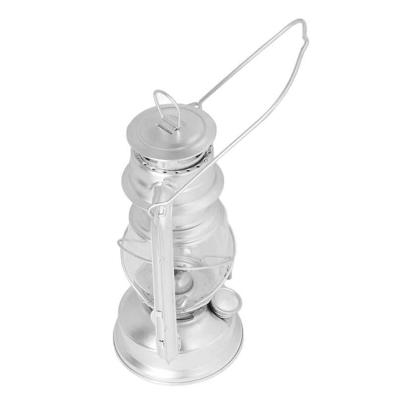 Oil Lamp Retro Appearance Iron Art Silver Kerosene Lamp with Metal Handle for Home Garden Courtyard Bar Inn Cafe