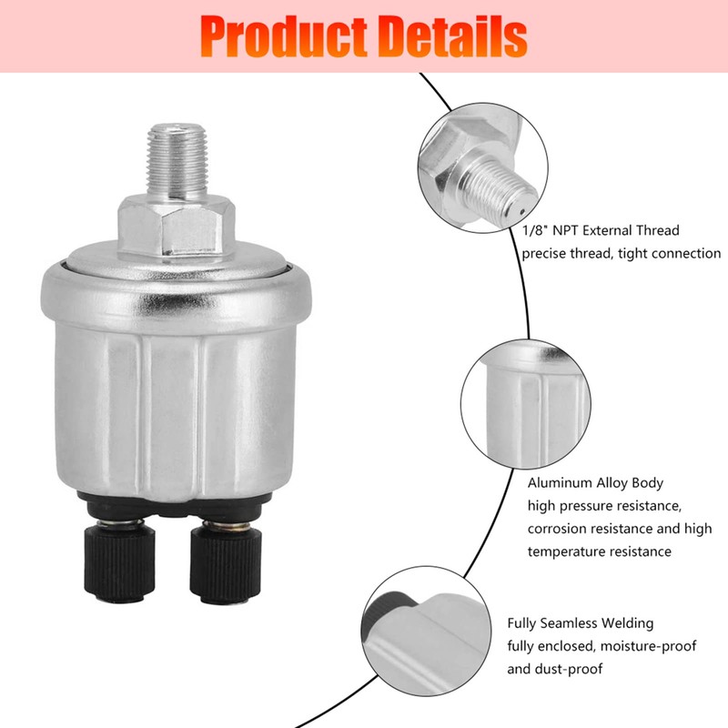 - [Easy installation and maintenance]: it is quite easy to install this oil pressure transmitter unit, the thread is 1/8 inch NPT male thread, please pay attention to the size when purchasing, easy to install and maintain