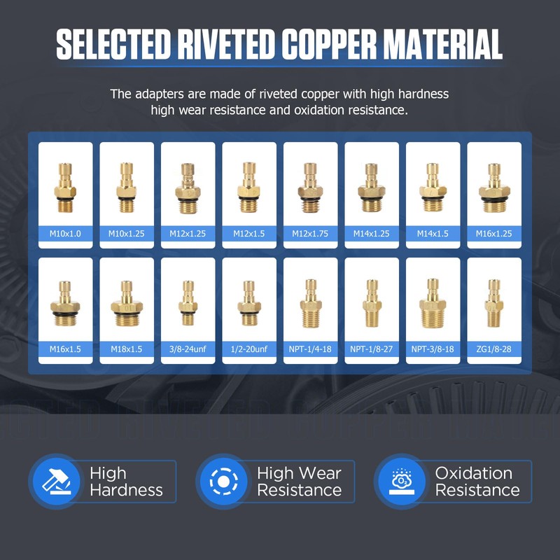 - 【Riveted Copper Material】Adapters constructed from high-quality brass resist rust and corrosion, rugged and long-lasting. Extra long 78.74'' cable adopt reinforced rubber, withstand pressure, temperature, and torsion.Included with plenty of adapters to fit variety of gasoline engines.