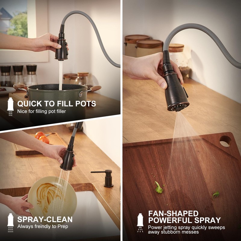 Oil Rubbed Bronze Kitchen Faucet with Pull Down Sprayer, Lava Odoro Bronze Kitchen Sink Faucet with Magnetic Docking Spray 3-Function, Brass Faucet for Kitchen Sink 1 Hole and 3 Hole, KF271-ORB