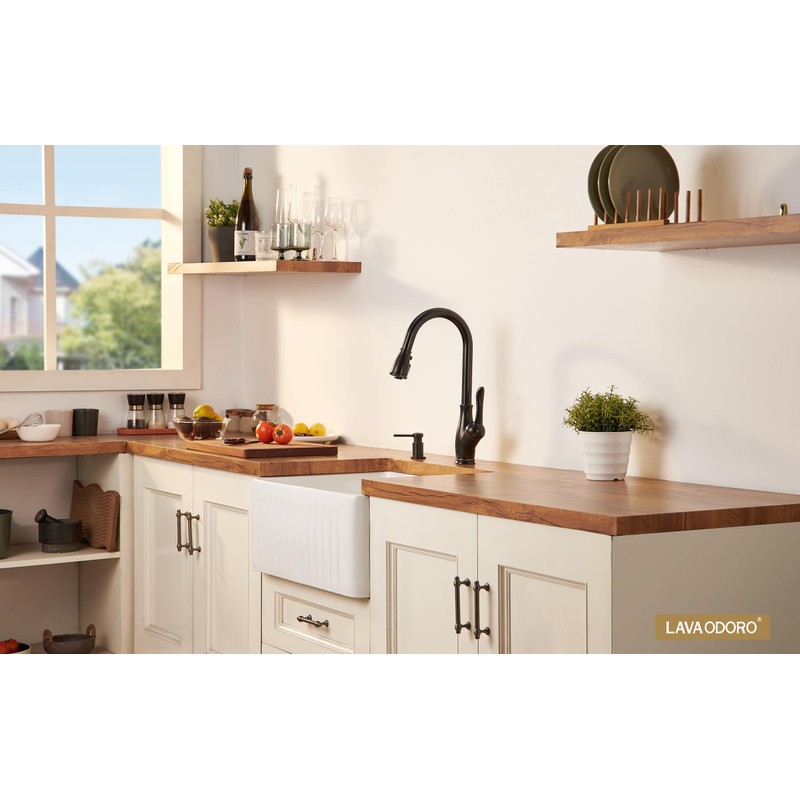 - Elegant Design- Lava odoro classic kitchen faucet bringing warmth and elegance ambiance to the kitchen. Lava odoro kitchen faucet melds a clean, contemporary sensibility with a crafted style to strike the perfect balance. Optimized 17-Inch faucet heigh fits under any standard kitchen cabinet