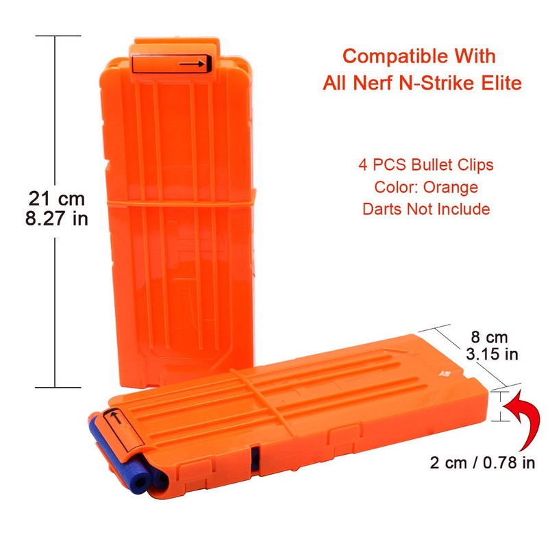 - This magazine clip is compatible with all NERF N-STRIKE ELITE. Suitable for the bullet size of 7*1.35cm,