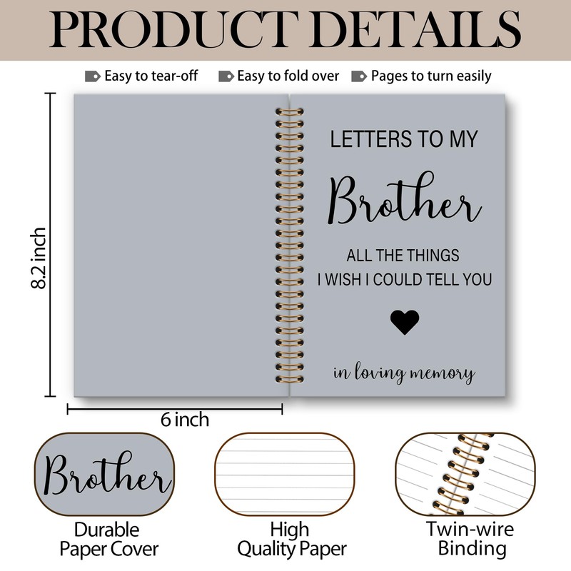 OINDADE Loss of Brother Sympathy Gifts Grief Notebook Journal, Letters to My Brother in Heaven Journal, Memorial Notebooks Gifts for Loss ofBrother, In Loving Memory Sympathy Gifts, 6x8.2In
