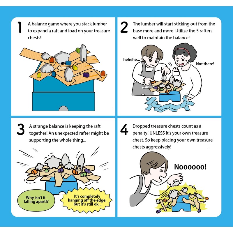 - THE CHALLENGE? MAINTAIN BALANCE! Strategically plan ahead and load the raft with treasure chests without tipping it over - every decision heightens the suspense of the game and affects the delicate balance of the expanding raft! In this captivating balance game, your nerves and planning skills are tested.