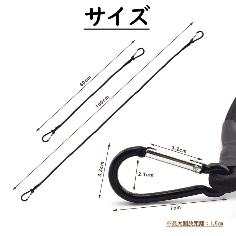 Oipopsf Elastic Band with Hook, Carabiner, Bungee Cord, 39.4 inches (100 cm), Belt Tightening, Bicycle, Cargo Tightening, Elastic Cord, Bike Rope, Stretch Cord, Durable, Nylon Rope, Black, Set of 6