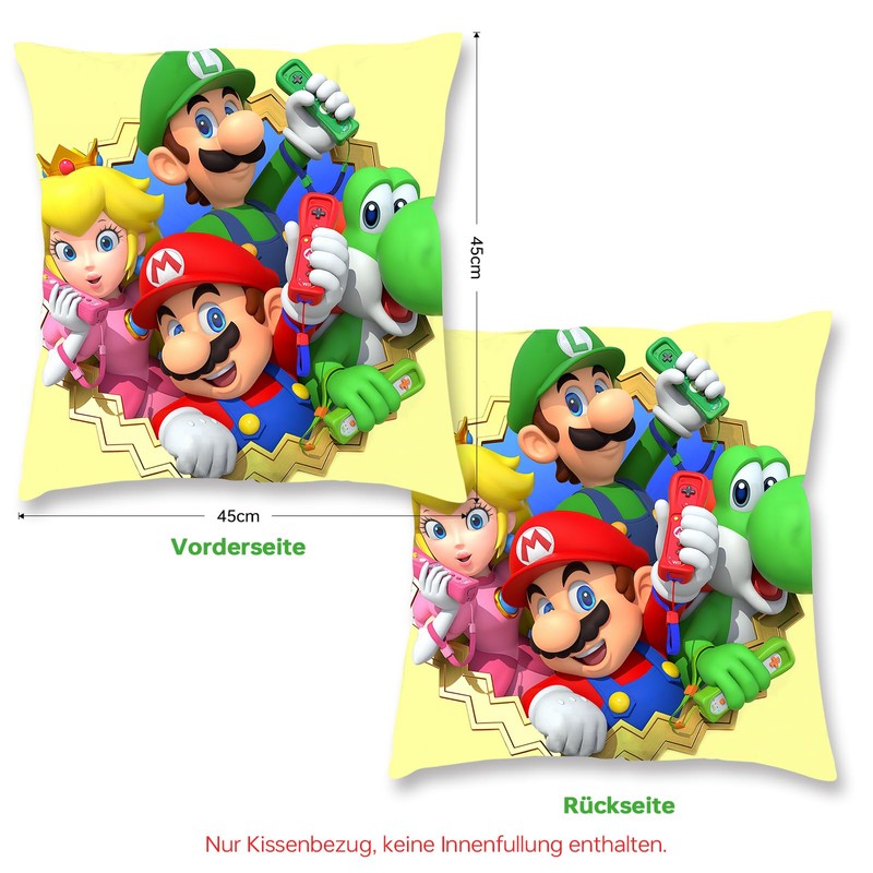 Oirigaga Super Bros Cushion Cover, Children's Cartoon Cushion Cover, Super Soft Plush Decorative Cushion Covers with Double-Sided Pattern and Hidden Zip for Sofa, Bed, Chair, 45 x 45 cm