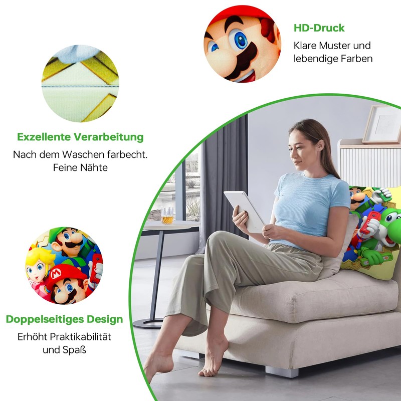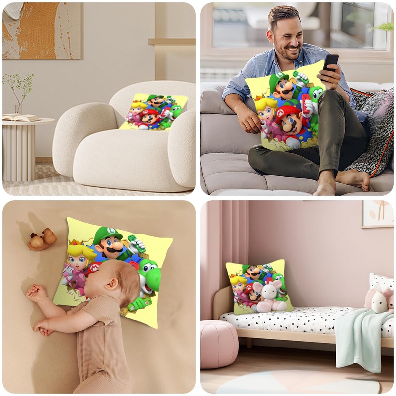 - Cartoon and Cute Super Bros Pillow Cover: inspired by the classic game character Super Bros, this reversible pillowcase features your favorite cartoon Super Bros pattern on both the front and back of the pillowcase. With the same pattern on both sides of the pillowcase, it is the perfect cushion cover for children.