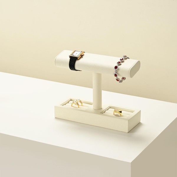 Oirlv Microfiber Watch Display Stand T-bar Watch Stand for Men and Women Jewelry Accessory Organizer for Store and Home (Creamy-white,Microfiber)
