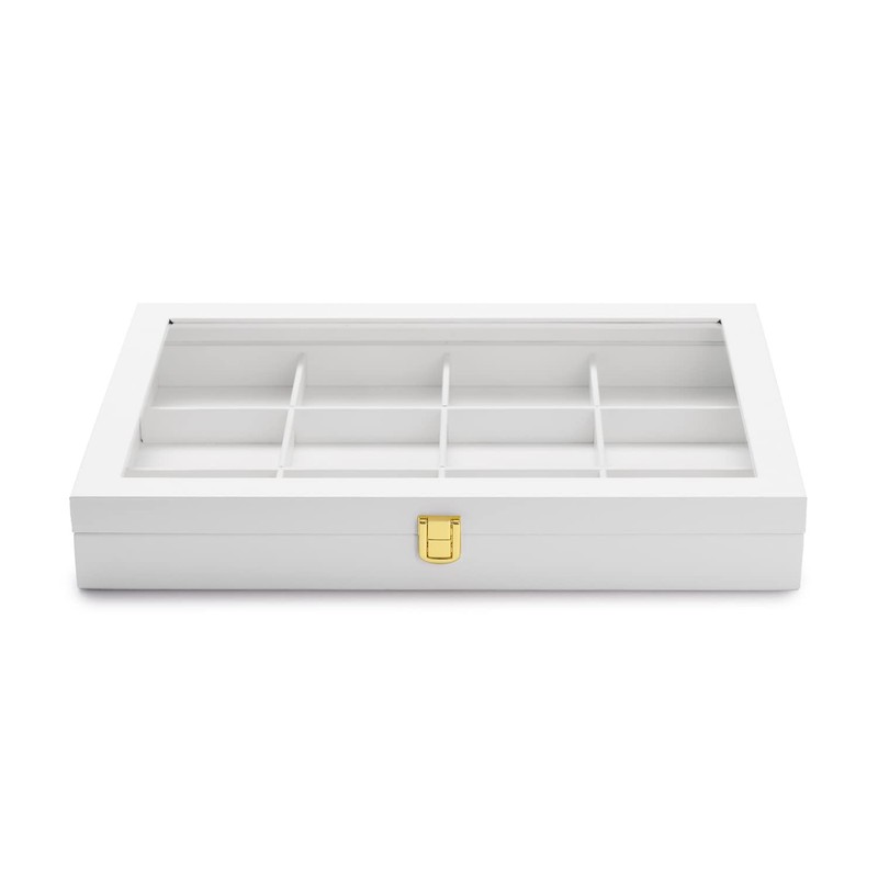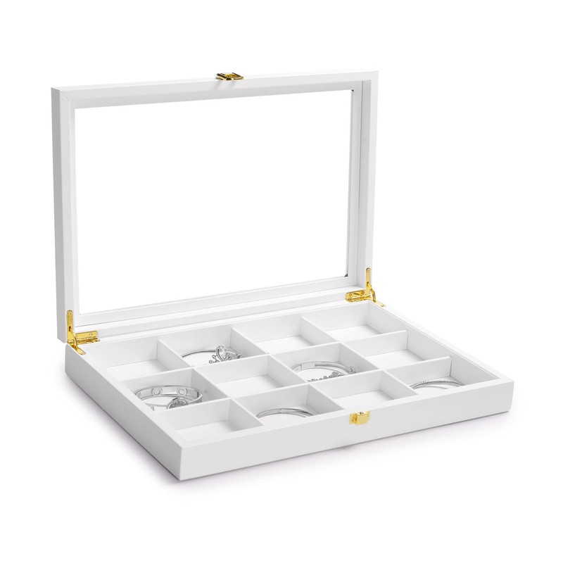 Oirlv White 12 Gird Jewelry Organizer Tray with Acrylic Lid Premium Leather Jewelry Box with Transparent Lid Bracelet Bangle Watch Display Case