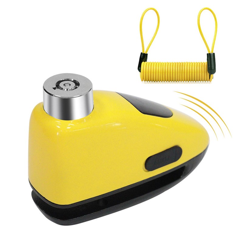 OIUINMMH Candado para Motocicleta y Bicicleta, Aprueba de agua Candado con Alarma de 110 dB y Cable de Alerta de 1.5 m, para Motocicleta Bicicleta etc Vehículos con Llanta de Disco (amarillo limon)