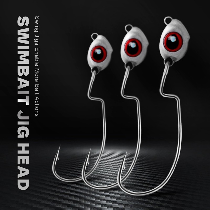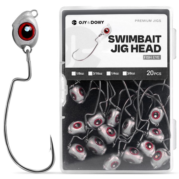 OJY&DOIIIY Fish Eye Swimbait Jig Heads, 20 Pack Weighted Hooks for Texas Rig or Ned Rig Fishing 3/16 oz