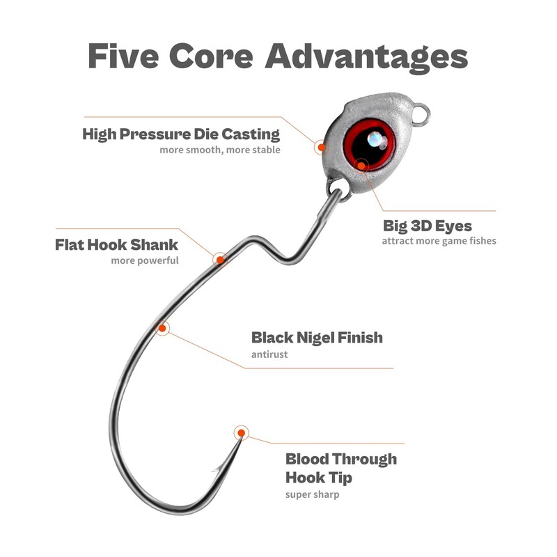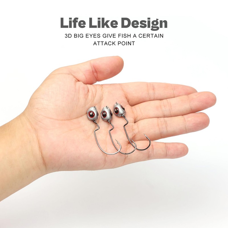 - Easy to rig, high efficient weighted hooks for texas rig or ned rig;