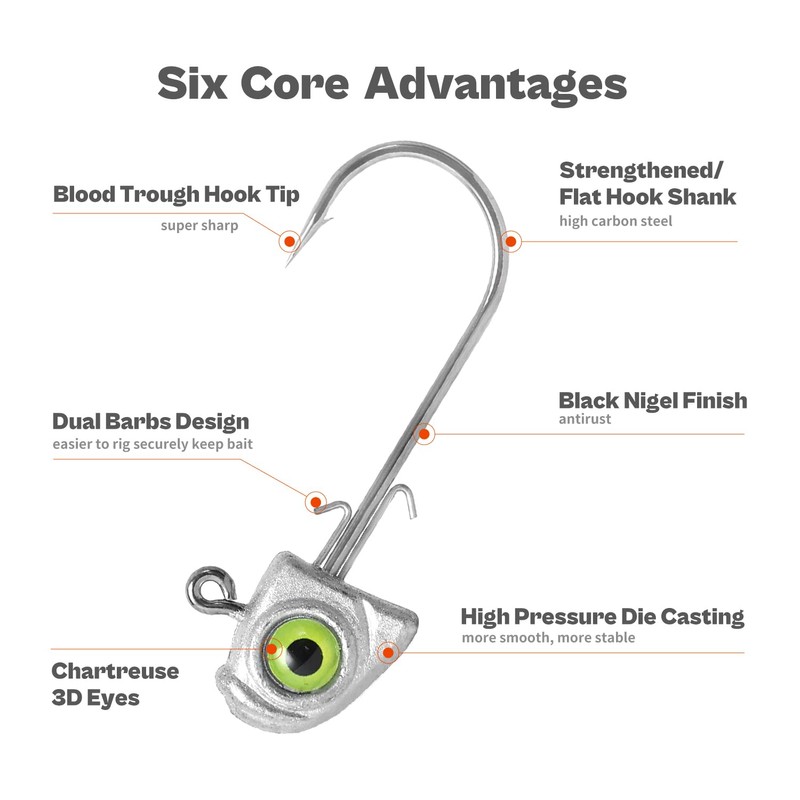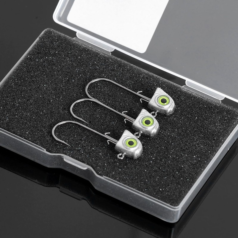 - 15 premium jig heads are pacakged in a plastic case with sponge mat to protect the sharp hook during transportation.