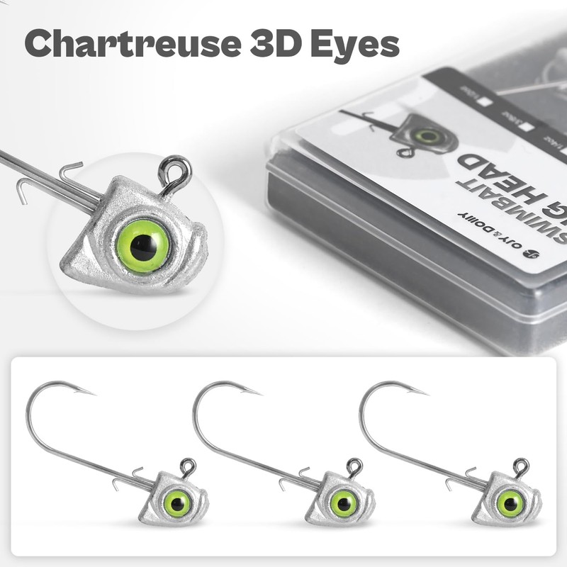 - Vivid chartreuse oversized 3D eyes present an irresistible attraction to predators, can pair with a variety of soft plastic fishing lures.