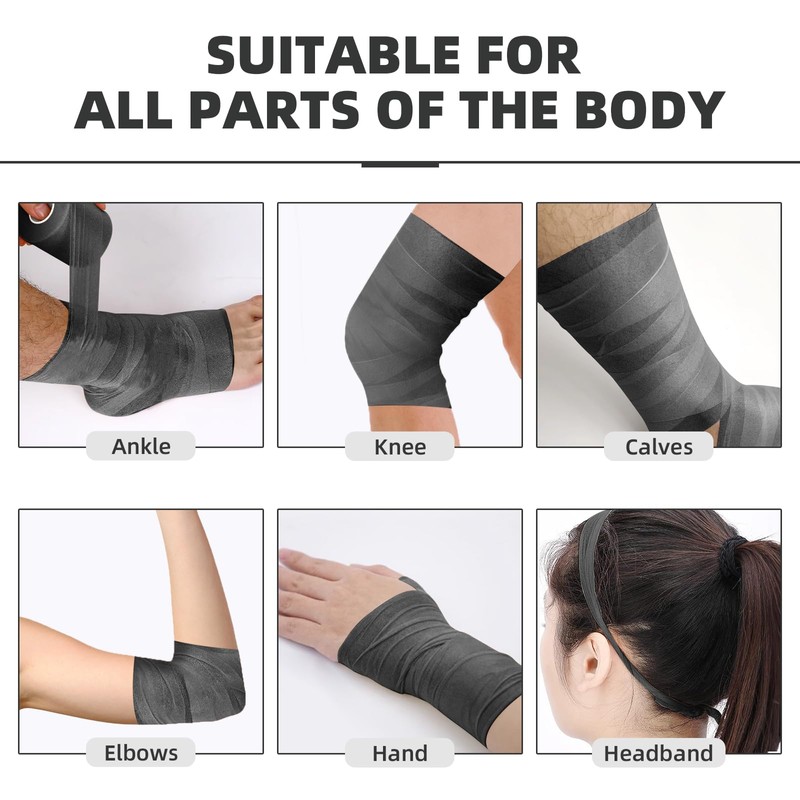 - WIDE APPLICATION - Pre wrap athletic tape provides a protective barrier between the skin and the sports white patch, effectively preventing muscle strains, can be wrapped around wrists, ankles, knees, elbows and other parts. It can also be used as a hair band, hair rope, instead of clips and rubber bands.